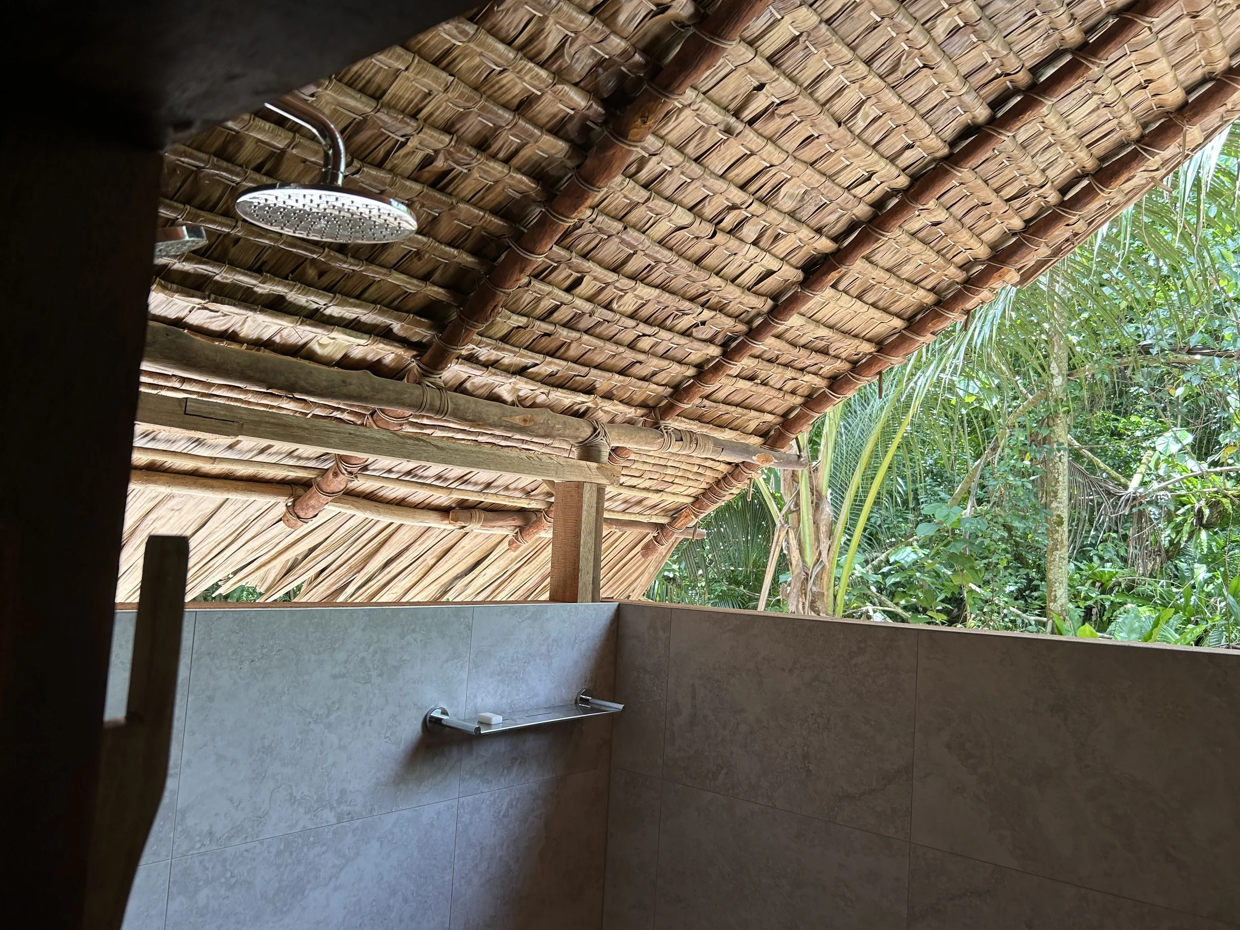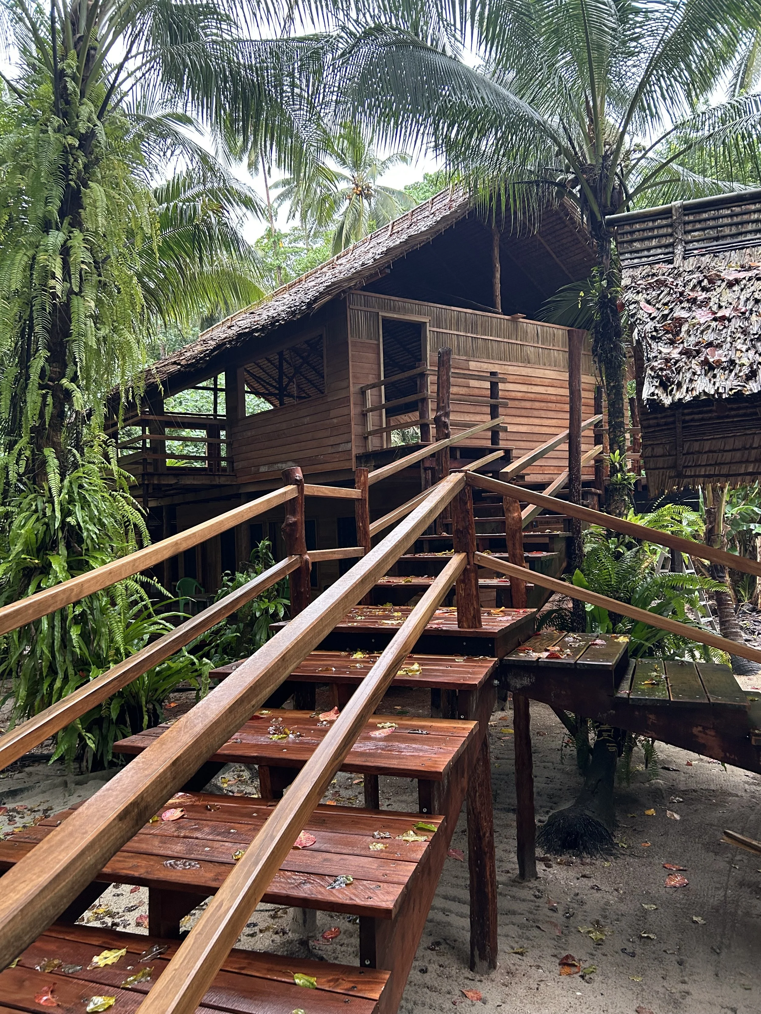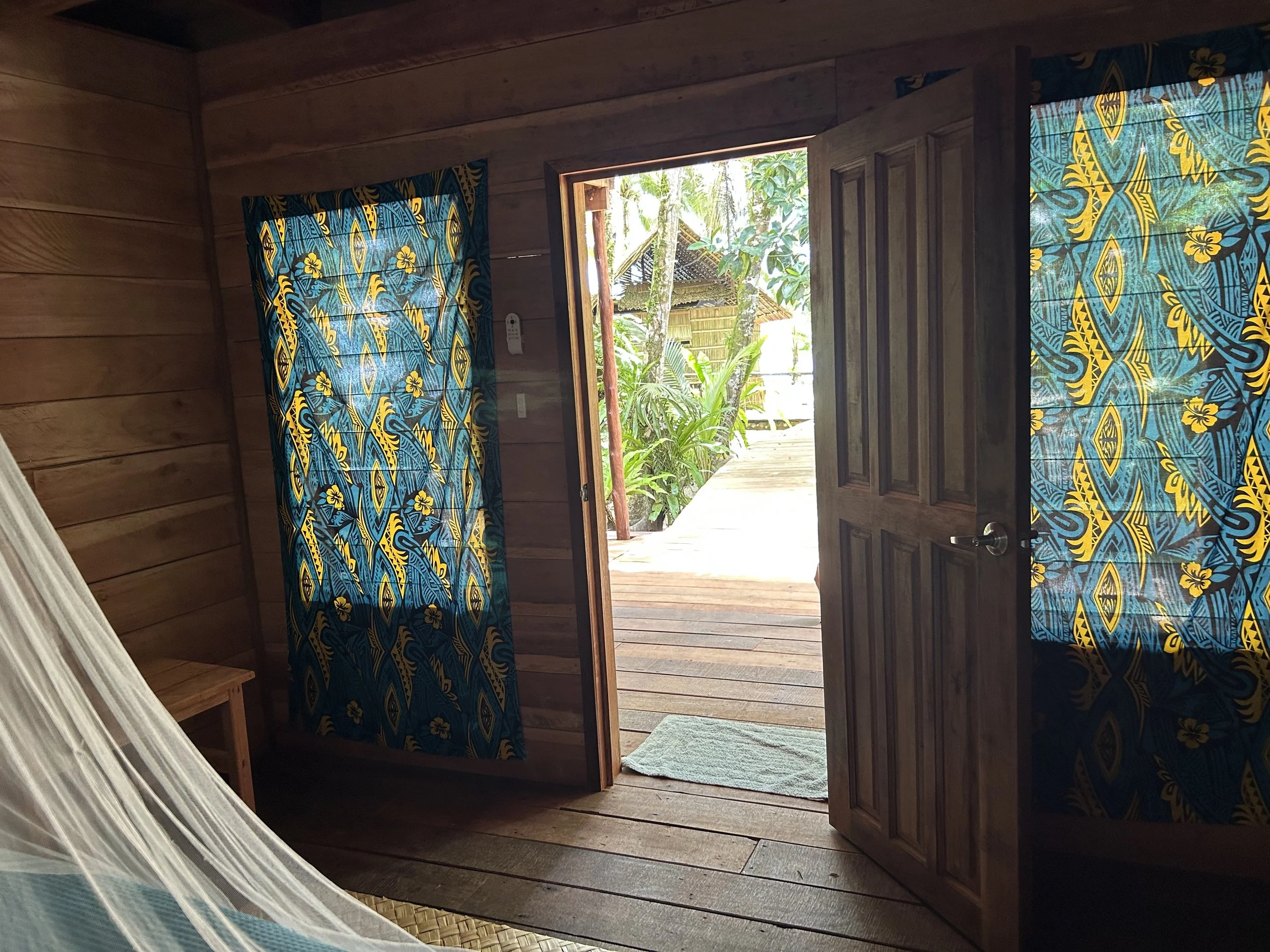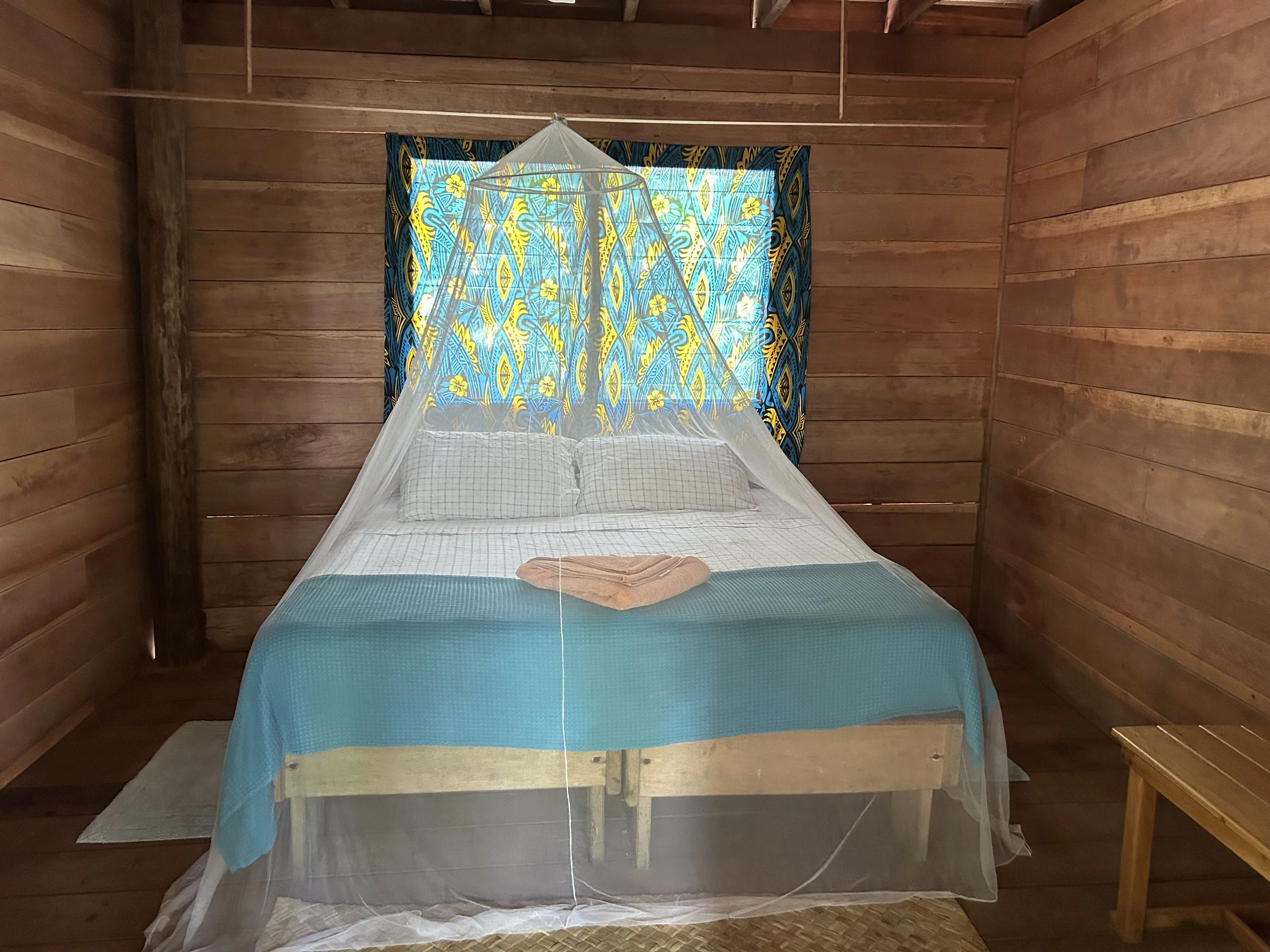 The Rainforest Lodge is suited for the more budget minded travel or those stay for just a couple of days. Constructed using traditional materials such as sago leaf and wild beetle nut and local timbers. The lodge has 3 rooms sharing a large common deck and Papatura newest bathroom with a view into the rainforest. She’s tucked away and surrounded by rainforest, orchids, banana and paw paw trees and local plants. All rooms are fitted out with LED lighting, inner spring mattresses, mossie nets, ceiling fan and 240v Australian power outlets. Bath towels are supplied but please bring your own toiletries. We do have 1 porta-cot available for those with babies so please reserve when booking. Awake with the sounds of the kingfishers chirping and parrots calling.